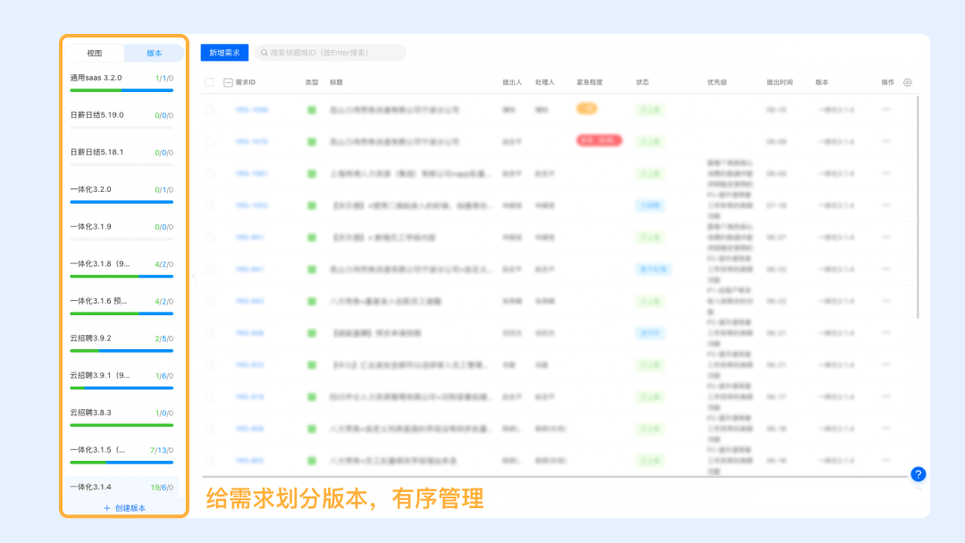 節奏決定速度,通(tōng)過 艾思信息 的(de)「版本」,每一(yī)個(gè)成員(yuán)都(dφ ♠ōu)能(néng)非常快(kuài)捷、直觀地(≠€¶dì)了(le)解每個(gè)版本的(de)目标、需求範圍、開(kāi)發進®≠§&度和(hé)質